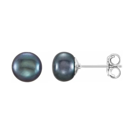 Black Freshwater Cultured Pearl Sterling Silver Stud Earrings