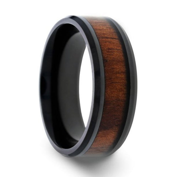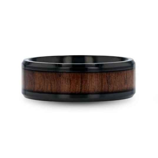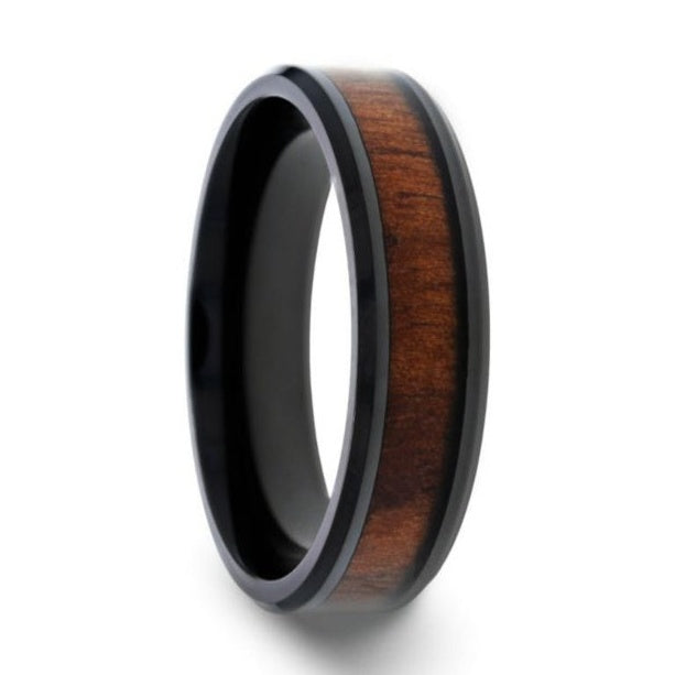 Black Titanium Men's Wedding Band with Black Walnut Wood Inlay