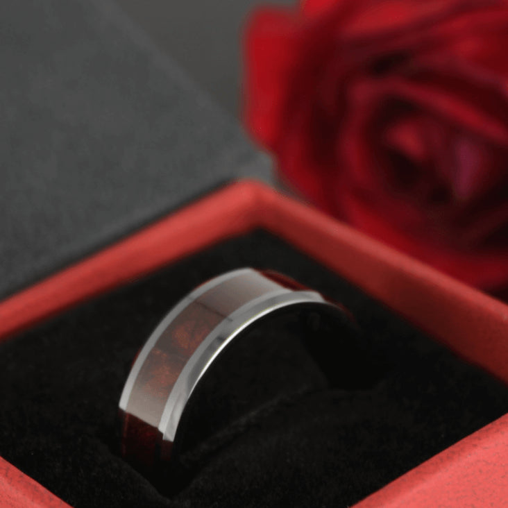 Tungsten Men's Wedding Band with Mahogany Wood Inlay