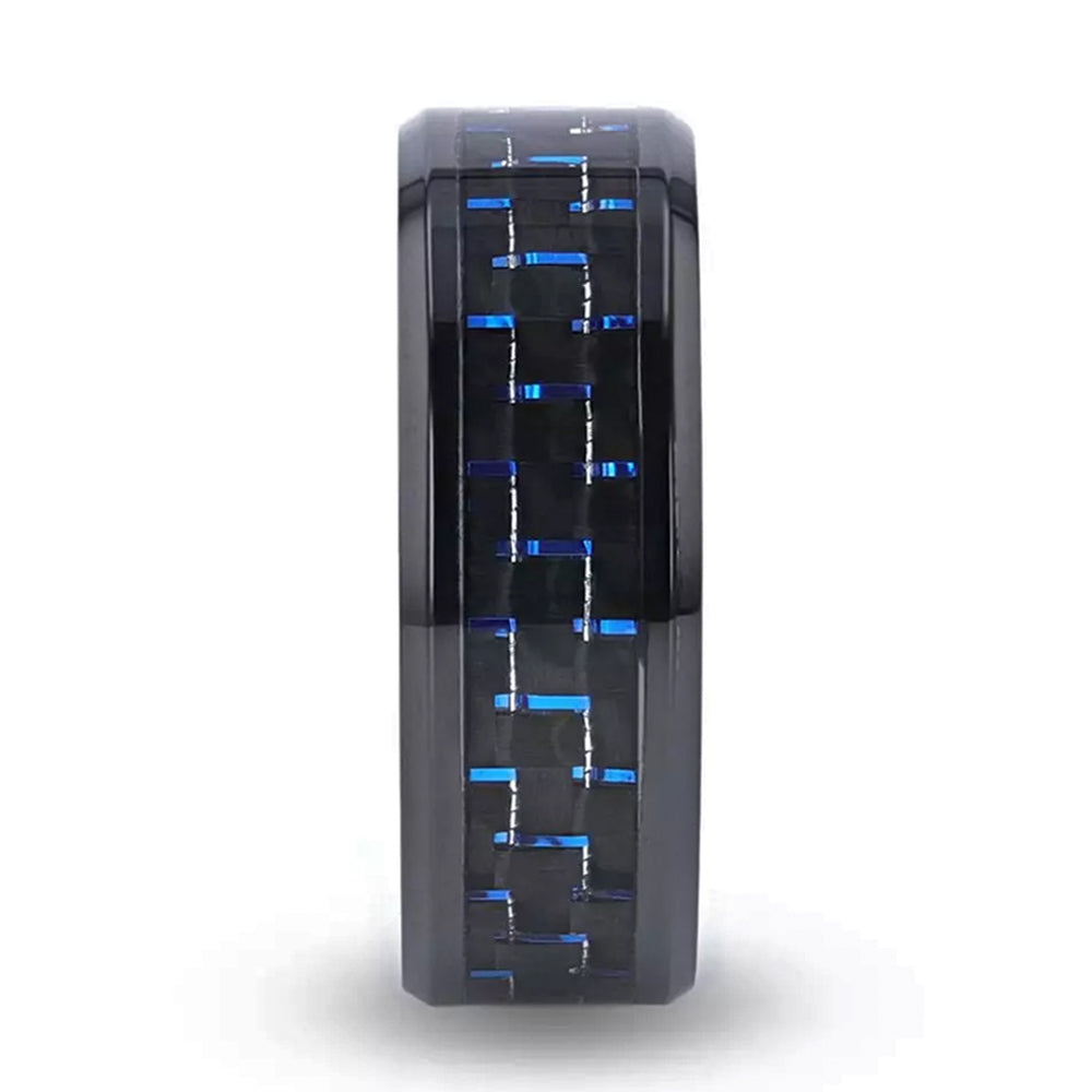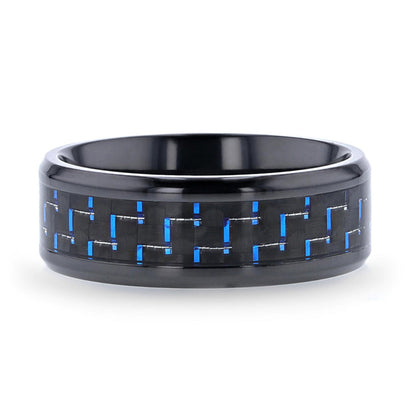 Black Titanium Men's Wedding Band with Blue & Black Carbon Fiber Inlay