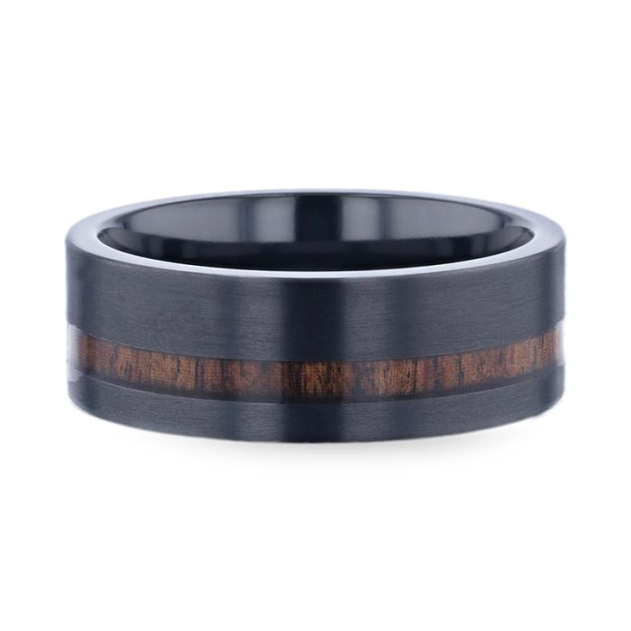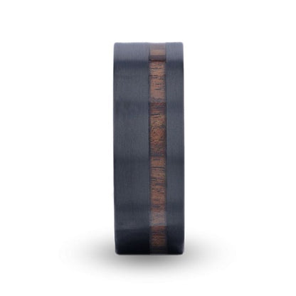 Black Titanium Men's Wedding Band with Offset Koa Wood Inlay
