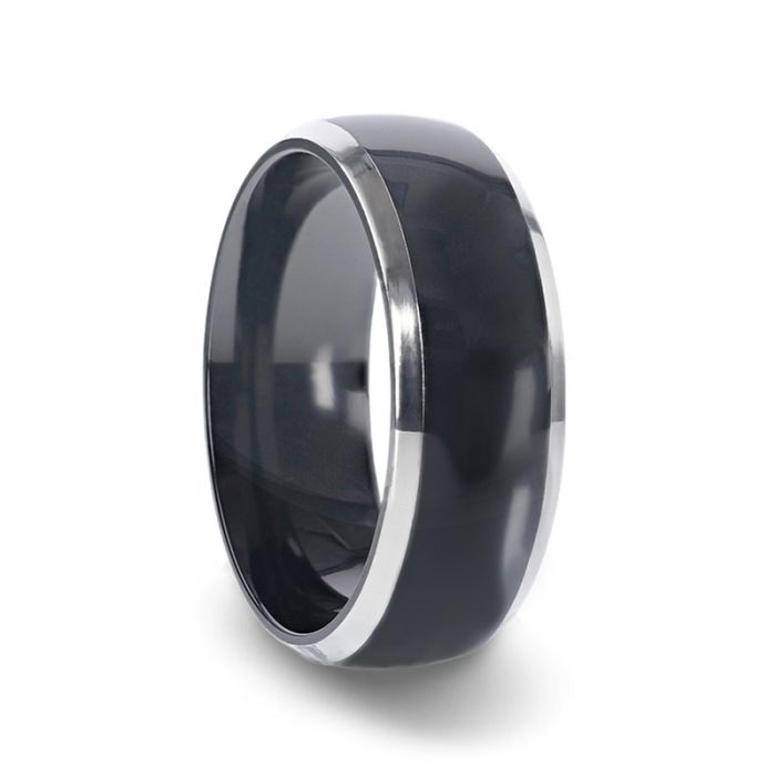 Black, classic, and elegant, this titanium wedding band for gents is the absolute definition of perfection. This wedding band won’t fade thanks to the meticulous process used to engineer it. In addition, the black color pierces well under the surface of the ring making it harder to fade. This wedding band features a domed style and beveled edges giving it a modern yet timeless look. It is an excellent choice for a man looking for something durable, strong and a ring that will never go out of style. Titanium is more durable than gold, platinum, and even stainless steel, a symbol of what love should be. It’s super strong and at the same time lightweight, and can withstand pressure without cracking. Titanium is also a hypoallergenic metal, making it an excellent choice for a man with sensitive skin. What makes this ring even more perfect is the fact that titanium doesn’t corrode or rust. The ring’s striking design is underpinned by quality and strength.