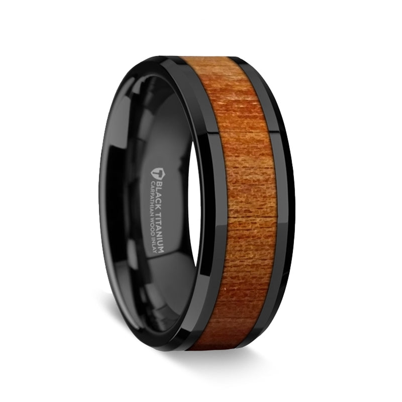 Black Titanium Wedding Band with Carpathian Wood Inlay