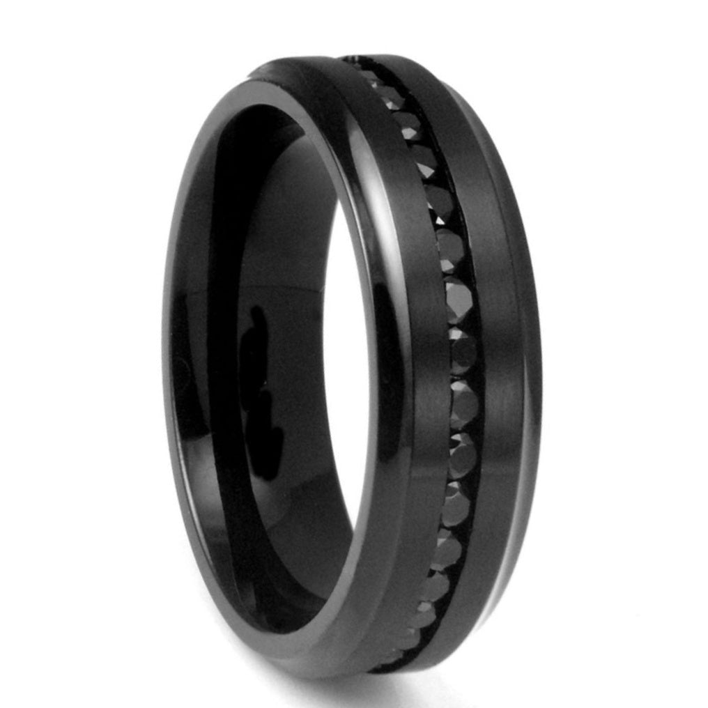 Black Titanium Wedding Band with Black Cubic Zirconia