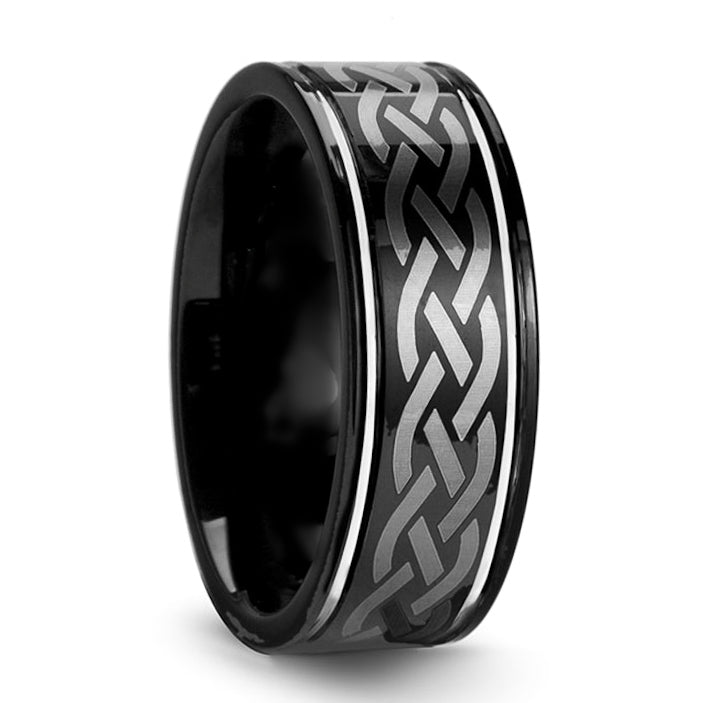 When I look behind, I am filled with gratitude. When I look forward, I am met with visions of the splendor to come. If ever I find myself gazing upward I am filled with strength. When I look within I am filled with peace but only because I have you at my side. May this black tungsten carbide ring offer a reminder of the gratitude given to each of us through our many blessings. You've found someone who loves you unconditionally, celebrate the connection with the unity symbol found within the Celtic design at its center. May you forever rely on one another for the care you desire to grow within. Always patient, with the forever you've forged together. First off, let's talk about style. The elegant celtic design on this band adds a touch of ancient mystery to any outfit. It's perfect for formal occasions, or even as a daily accessory. The black tungsten metal is scratch-resistant and durable, so you can wear it without worrying about damage. But we know that style isn't everything. That's why our black tungsten wedding band also comes with a lifetime warranty. Any damage or size issues are covered, so you can wear your ring with confidence for years to come. And if you're considering giving this ring as a gift, you'll be happy to know that it comes in a sleek black box, ready for presentation. It's a gift that will truly last a lifetime.