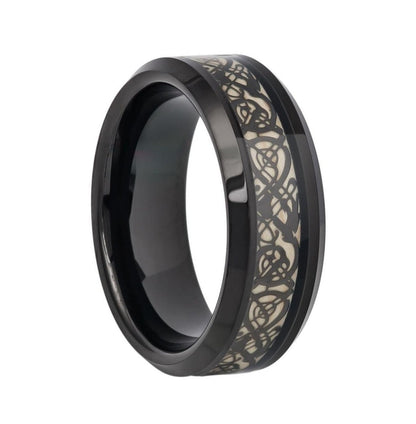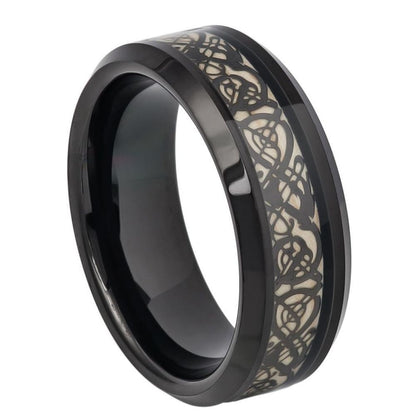 Black Tungsten Men's Wedding Band with Celtic Dragon Inlay