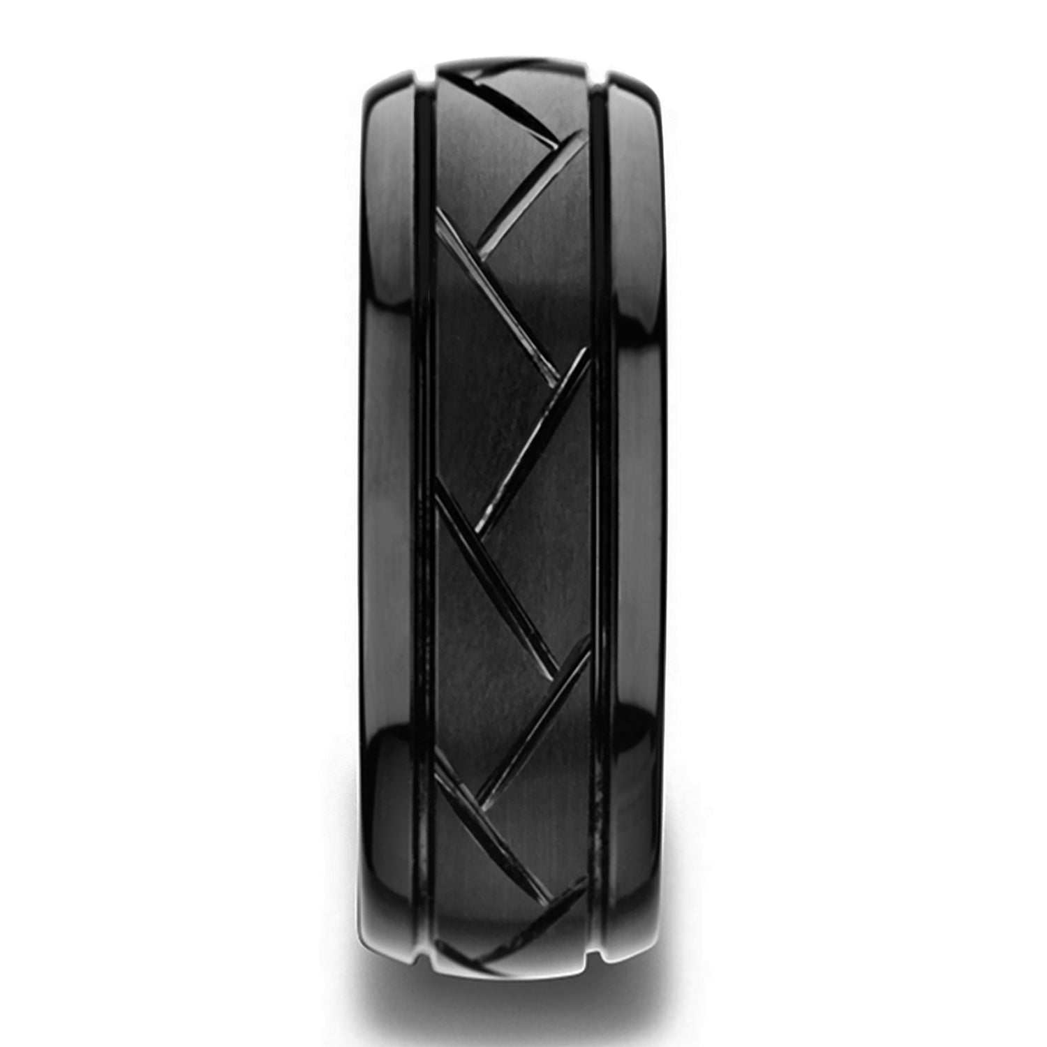 Black Tungsten Men's Wedding Band with Diagonal Grooves