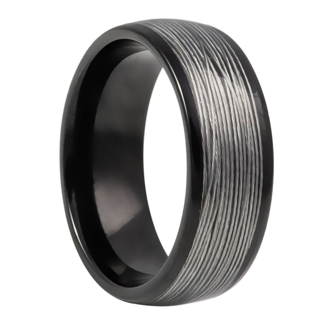 Black Tungsten Men's Wedding Band with Steel Cable Inlay