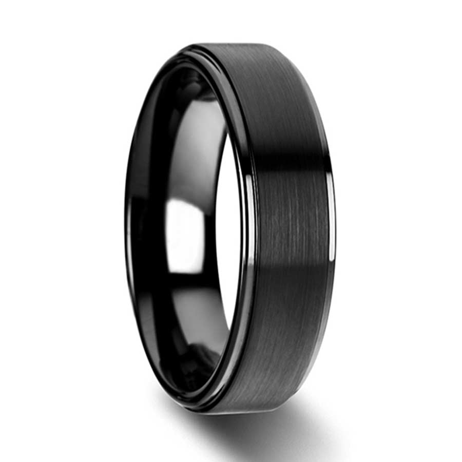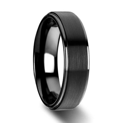 Black Tungsten Men's Wedding Band with Stepped Edges