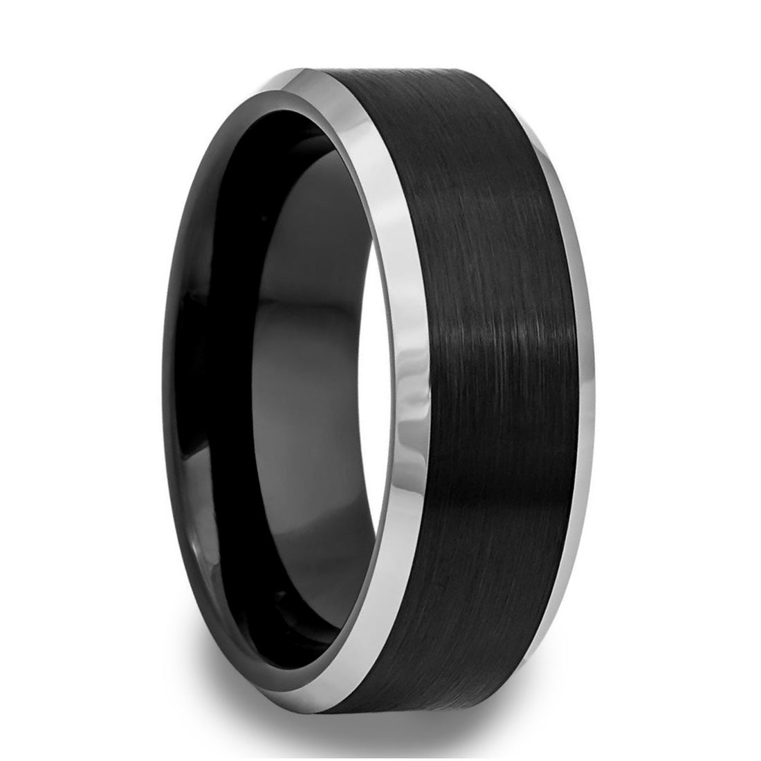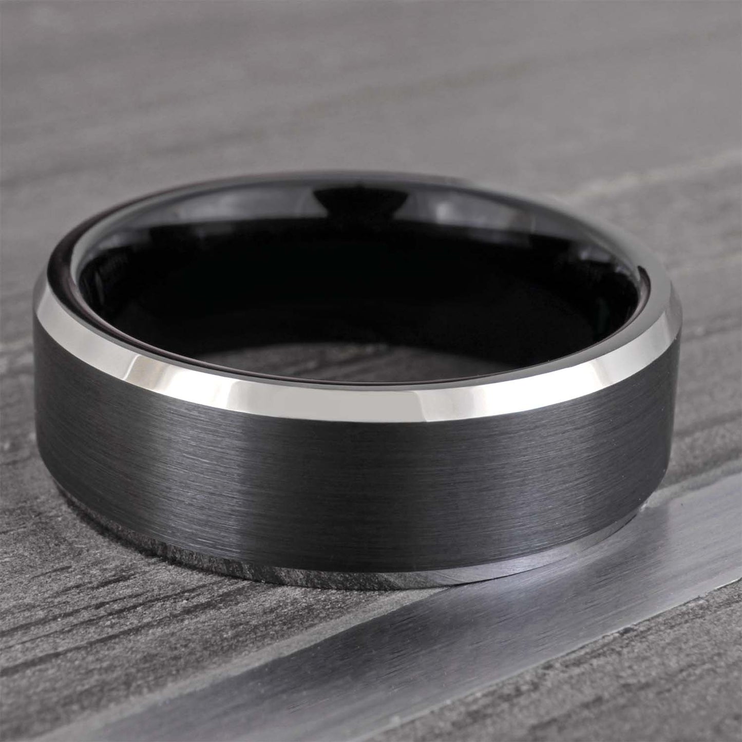 Black Tungsten Wedding Band with Contrasting Silver Edges