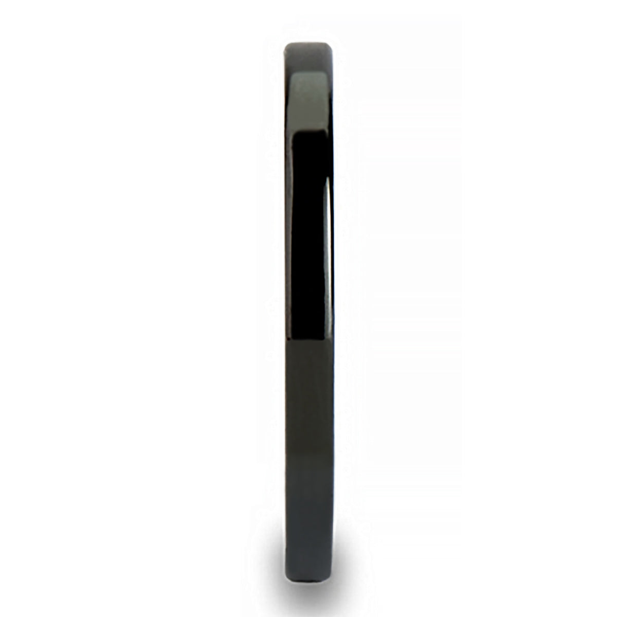 This tasteful ring is made in the traditional pipe cut style with a finely polished shiny black finish. This ring style is available for both men and women alike, especially for couples who prefer to have matching rings! The beautiful shiny finish is definitely for those who prefer glossily finished rings that give a distinctive appearance. Made from Tungsten carbide metal, this ring is the most durable and the most scratch resistant making it absolutely perfect for everyday wear and absolutely activity! Do not miss out on this black beauty. Order yours today and start enjoying the benefits of a high-quality, stylish ring.