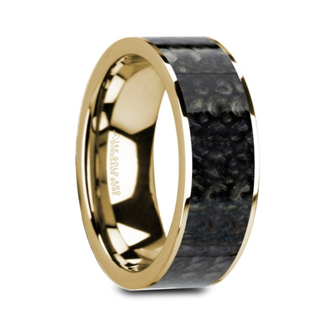 10k Yellow Gold Men's Wedding Band with Lava Rock Inlay & Black Diamonds