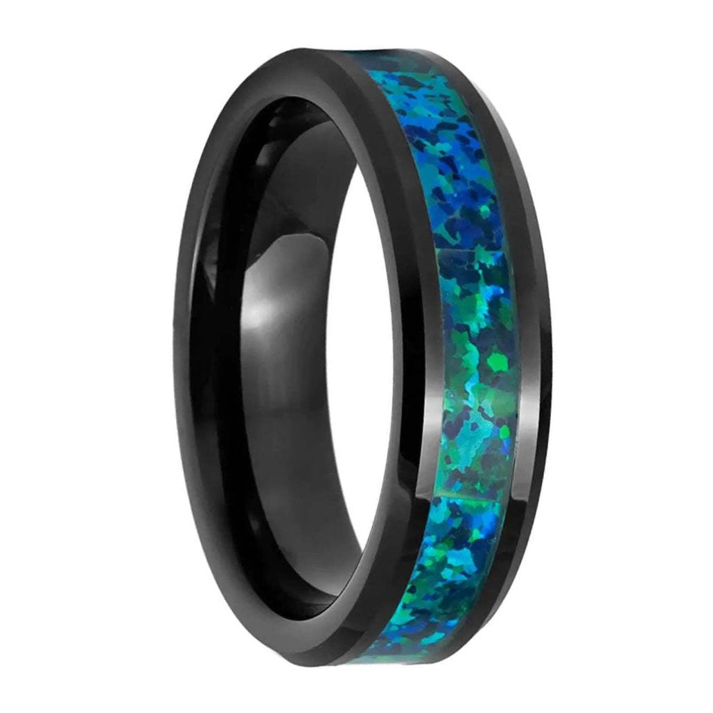 Blue Opal Inlay Black Tungsten Men's Wedding Band