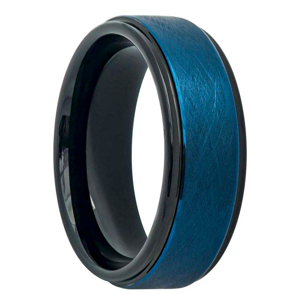 We've got the perfect wedding band for all you stylish dudes out there. Check out this Blue Wire Brushed Black Tungsten Men's Wedding Band. This bad boy is tough as nails and designed to last. Its wire brushed finish gives it a sleek and modern look that'll make you stand out from the crowd. And the best part? Its affordable price are affordable. But wait, there's more! This wedding band is also hypoallergenic, making it perfect for those with sensitive skin. And it's scratch-resistant too, so you can wear it through all your daily activities without worrying about damaging it. It's the ultimate combination of durability and style. So, whether you're getting hitched or just want to upgrade your jewelry game, this Blue Wire Brushed Black Tungsten Men's Wedding Band is the way to go.