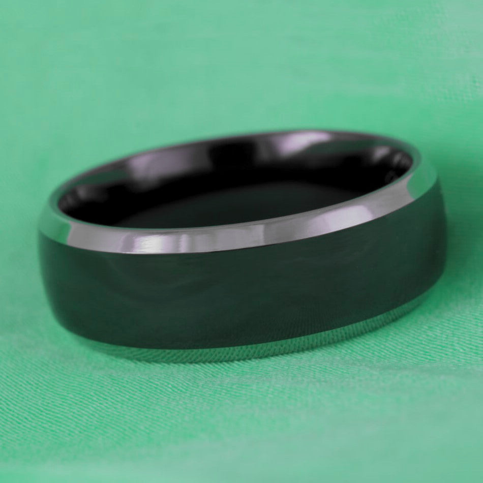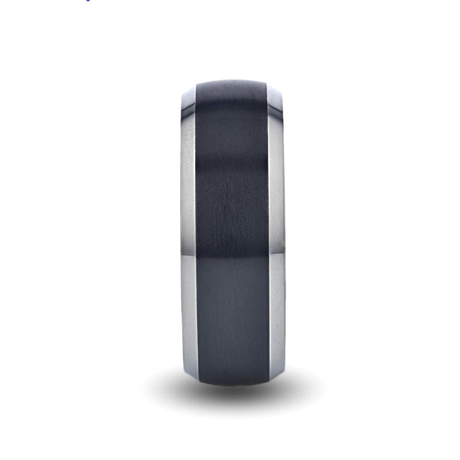 Brushed Black Titanium Men's Wedding Band with Silver Edges