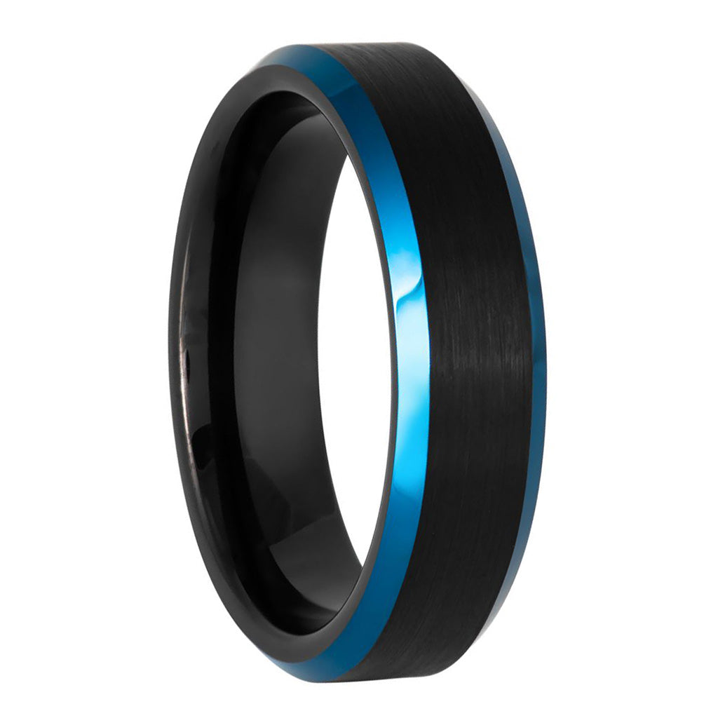 Brushed Black Tungsten Men's Wedding Band with Blue Edges