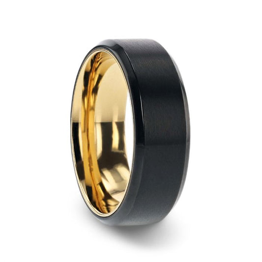 Black Titanium Men's Wedding Band with Contrasting Gold Interior