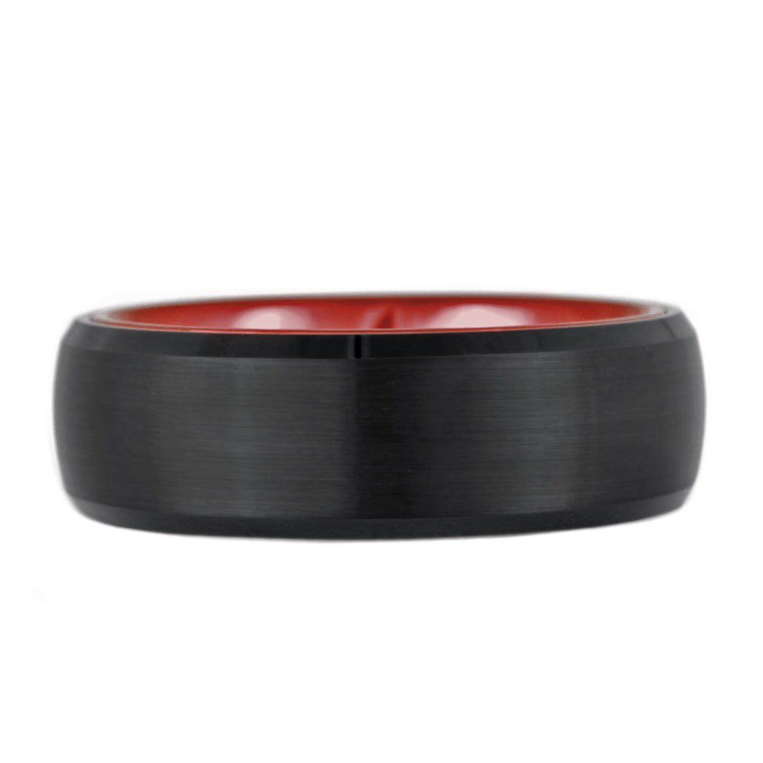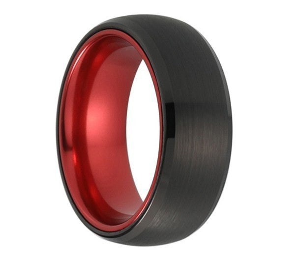 Brushed Black Tungsten Men's Wedding Band with Contrasting Red Interior