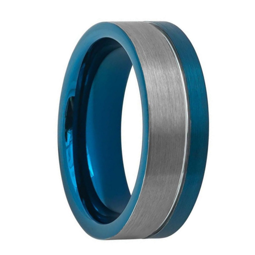 Get ready to say "I do" in style with this brushed blue grooved tungsten men's wedding band! Crafted with high-quality tungsten, this wedding ring is the perfect combination of durability and style. The brushed blue finish adds a pop of color to any outfit, making it a great everyday accessory even when you're not walking down the aisle. Not only does this ring feature a unique design, but it's also scratch-resistant and hypoallergenic. So, whether you're a groom-to-be or simply looking for a stylish piece of jewelry, this tungsten ring is the perfect choice. Plus, it comes at an unbeatable price, so you won't have to overspend to look great on your big day. So, if you want a wedding band that's both practical and stylish, look no further than this brushed blue grooved tungsten men's wedding band. Order now and get ready to tie the knot in style.