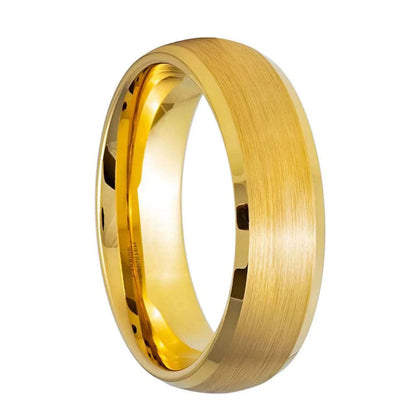 Brushed Domed Gold Tungsten Men's Wedding Band with Polished Beveled Edges