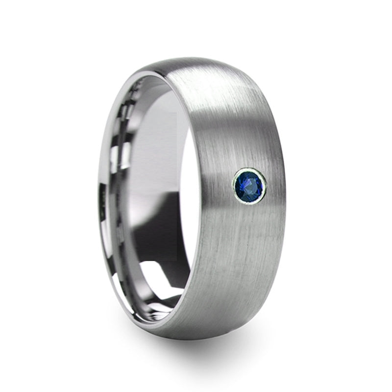 Brushed Domed Tungsten Men's Wedding Band with Blue Diamond