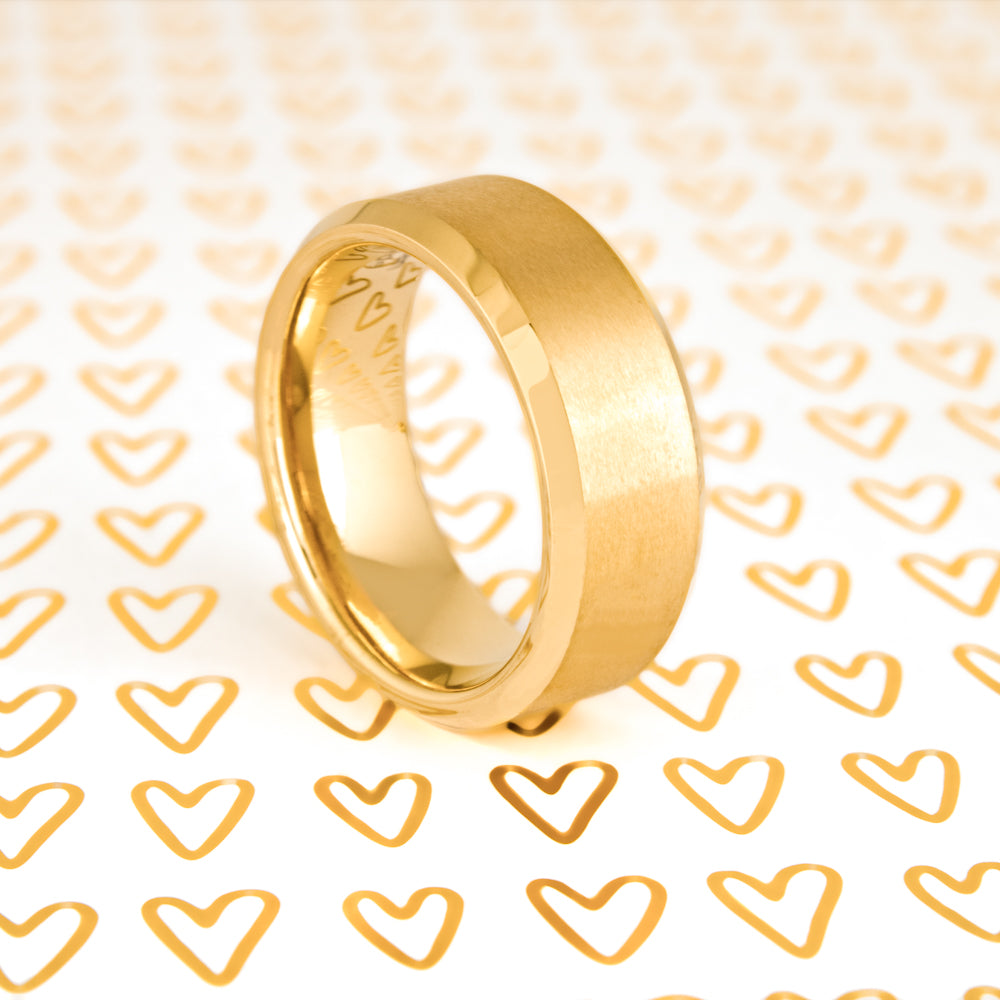 It's a dream come true. It is a step of your life so monumental; you do feel the pressure of it. Pressure is good, but it causes us to make rushed decisions. Like placing emphasis on guests and their entertainment rather than on the moment itself. You might spend a fortune on the catering, yet forget the importance of spending a few quiet moments together during the wedding day. That is why we're making this gold-plated tungsten couple's matching wedding band set a center, a no-brainer. This is love in its simple sophistication. With its classic, modern style, each ring has a sleek brushed gold finish, tungsten construction for strength, and highly polished beveled edges for a sophisticated look. Invest in a pair of this matching wedding band set and make a statement of commitment, friendship and love. The smooth and comfortable interior ensures that you won't even realize you're wearing a ring, making them perfect for everyday wear. And with a matching set, you and your partner can show off your love and solidarity with style and grace.