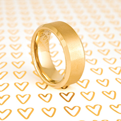 Brushed Gold Tungsten Couple's Matching Wedding Band Set with Beveled edges Details