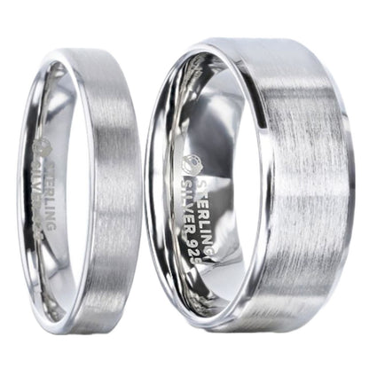 Two perfectly matched brushed sterling silver couple's wedding bands are included with this pair of rings. Made from high-quality sterling silver, these bands are both stylish and durable. Not only does this ring set look amazing, it also comes with a lifetime warranty. If you ever need to exchange it or if there's any damage, we've got you covered. These wedding bands are perfect for the couple who wants to show off their commitment without settling for boring, overpriced rings. With our unique style and affordable prices, you can have the wedding band set of your dreams while still saving money for the honeymoon. Get your brushed sterling silver couple's matching wedding band set today and start your happily ever after.