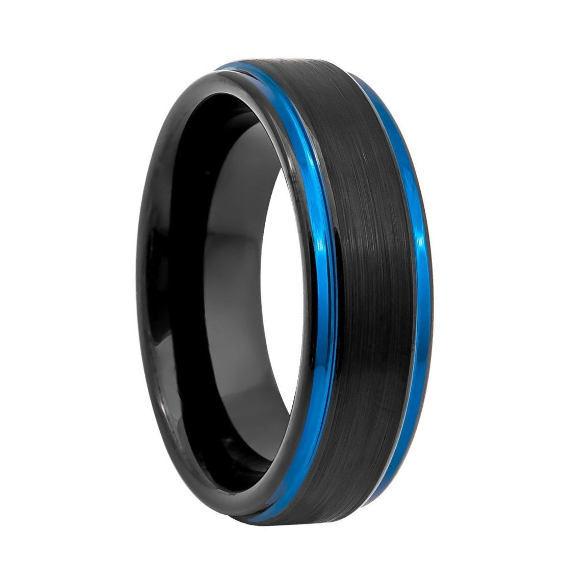Get ready to rock your wedding day with our black and blue brushed tungsten men's wedding band! This ring is the perfect combination of style and durability, making it the ideal choice for any groom who wants to make a statement. The brushed tungsten finish is sleek and modern, while the blue edges add a pop of color and personality. Not only does this ring look great, but it's also built to last. Tungsten is one of the toughest materials out there, so you can rest assured that this ring will stand up to the rigors of everyday wear. Plus, the comfort fit design ensures that you'll be able to wear it all day without any discomfort. Whether you're looking for a wedding band for yourself or as a gift for someone special, this brushed tungsten men's wedding band with blue edges is a great choice.