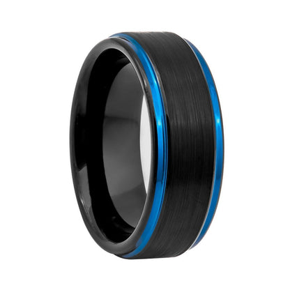 Brushed Tungsten Men's Wedding Band with Blue Edges