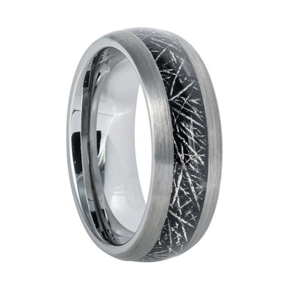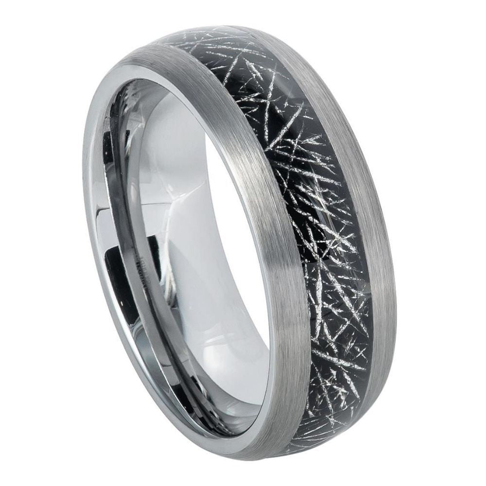 Domed Brushed Tungsten Men's Wedding Band with Imitation Meteorite Inlay
