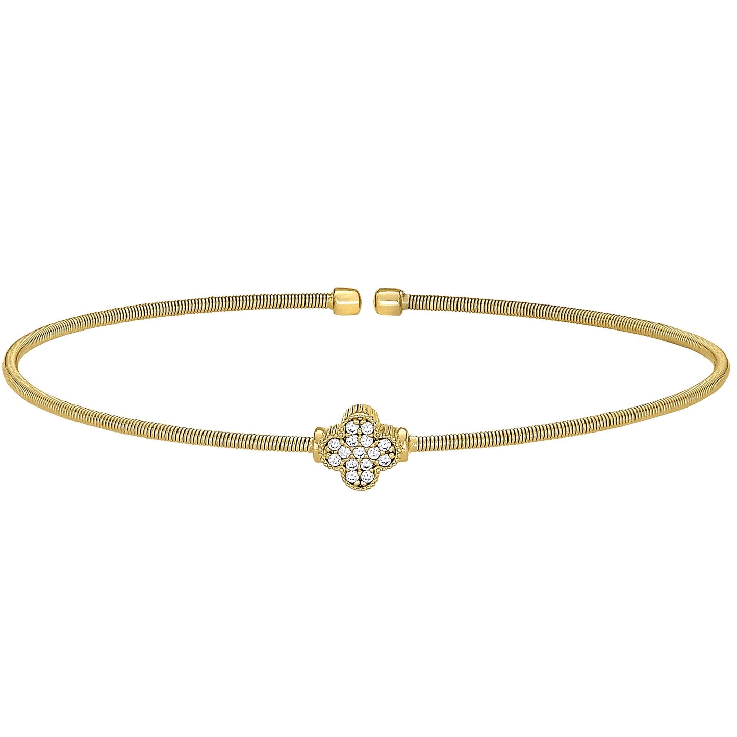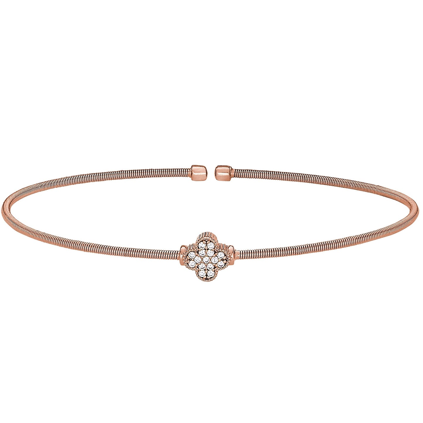 Clover Design Flexible Cable Bracelet with Simulated Diamonds