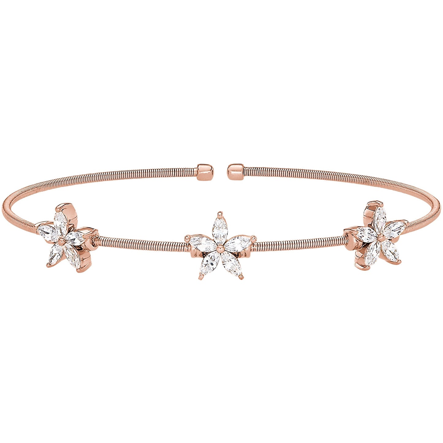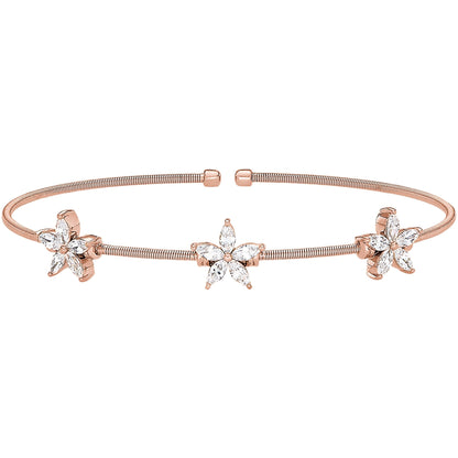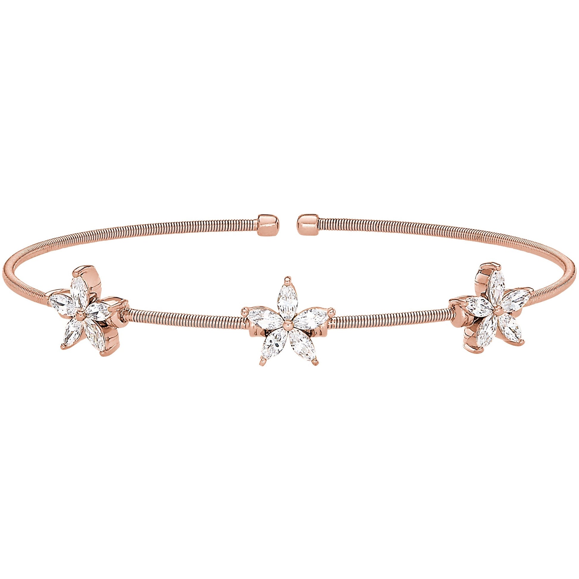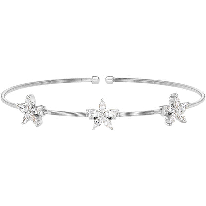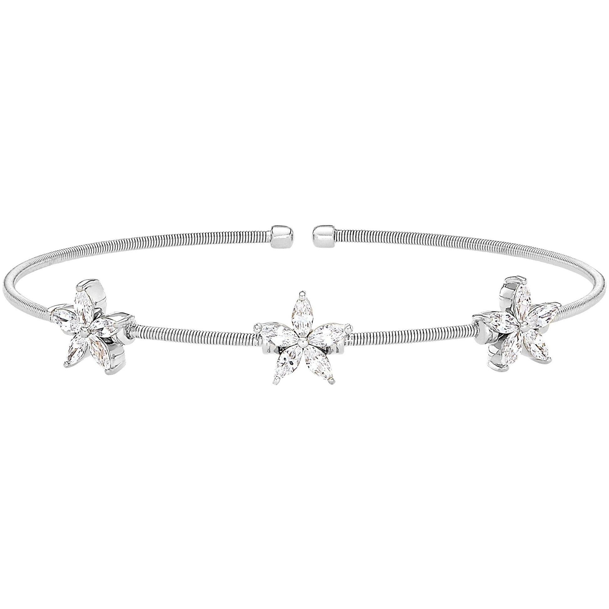 Cable Bracelet with Simulated Diamond Flowers