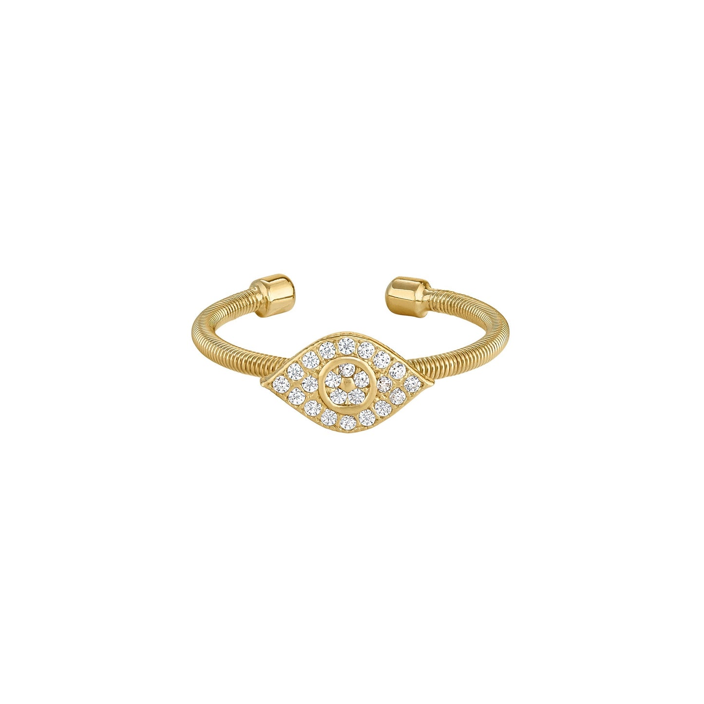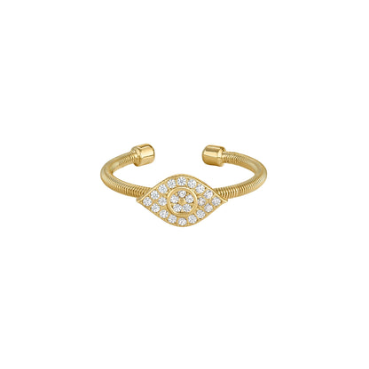 This flexible cable evil eye ring with simulated diamonds is the perfect blend of style, comfort, and affordability. The ring is designed to fit comfortably on your finger while adding a touch of elegance to your outfit. The evil eye design is believed to ward off negative energy and protect the wearer from harm. The simulated diamonds add a touch of luxury without going over budget. This ring is perfect for anyone who wants high quality jewelry without spending a fortune. It's a thoughtful gift for someone special or a treat for yourself. The flexible cable design ensures a perfect fit for any finger size. You'll love how it sparkles in the light and catches the eye of everyone around you. Show off your unique style with this beautiful and trendy piece of jewelry. Head out to a party or a night out with friends and let this ring be the perfect accessory to your outfit. Add some sparkle to your life and ward off negativity with this stylish and affordable flexible cable evil eye ring with simulated diamonds.