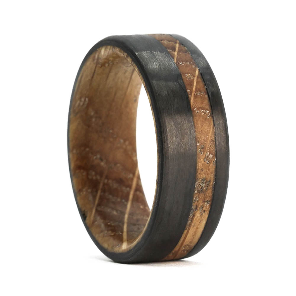 Carbon Fiber and Whiskey Barrel Wood Men's Wedding Band