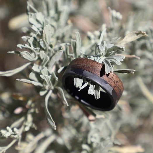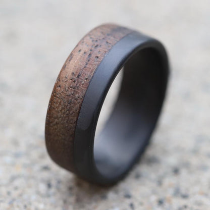 Carbon Fiber Men's Wedding Band with Walnut Wood