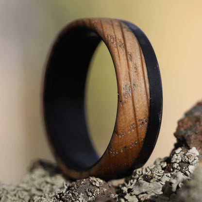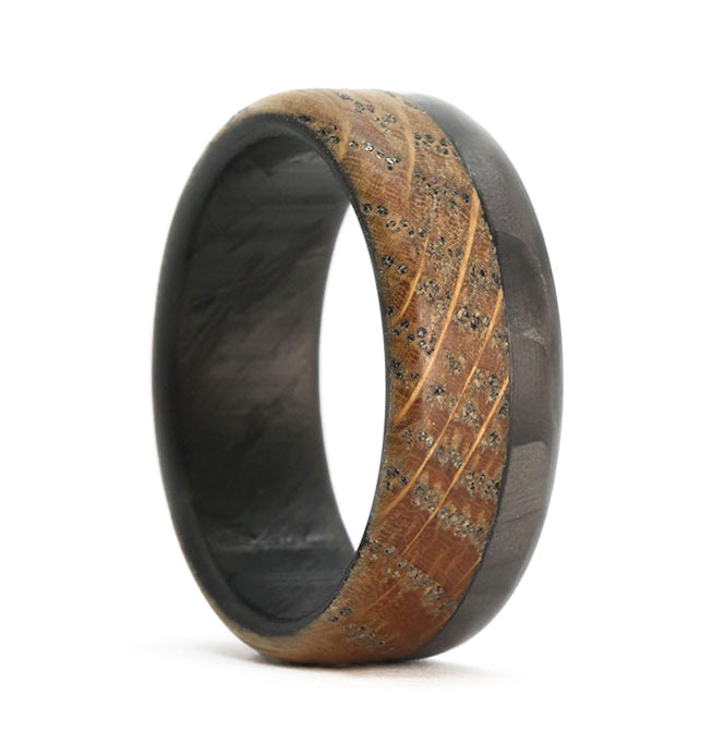 Carbon Fiber & Whiskey Barrel Wood Men's Wedding Band