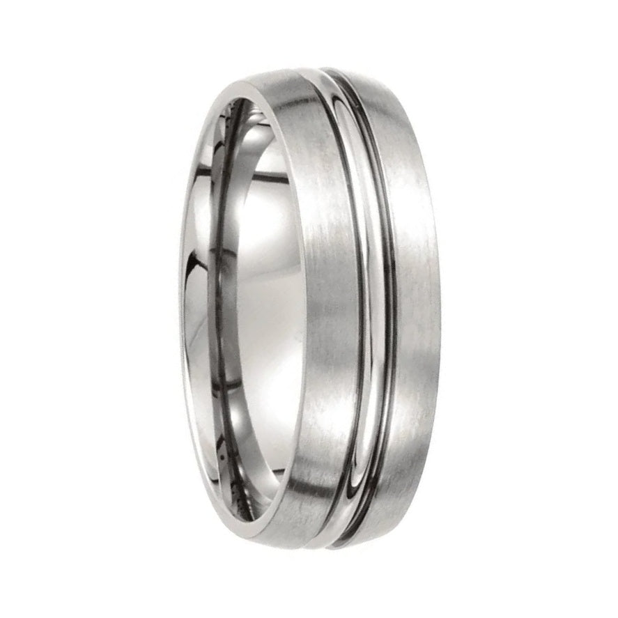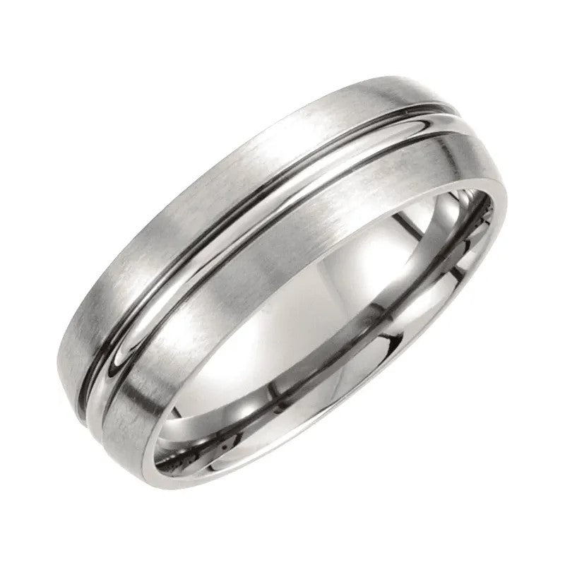 Radically awesome and undeniably comfortable, this is a modern men's wedding band. Stand out in unmatched style and look the part with this titanium wedding ring. It will instantly charm you the minute you lay your eyes on it. Its energetic vibe is on another level. It is one slick piece- polished up and tastefully smacked with a jaunty grooved center. This piece is for a gallant gentleman who knows what he wants in life and how to get it. A wedding band should symbolize your commitment to the love of your life and express your unique personality and style at the same time. As innovative as it is elegant, this titanium ring manages to achieve all of these with a timeless and modern design. The groove running at the center of the band gives the ring a refined appearance that enhances the beauty of this contemporary piece. Intensity and strength come together in this fetching ring. Forged to the highest standards of craftsmanship, this band is built using one of the toughest materials to give it excellent durability and resilience. To complement that strength, the ring has a comfort fit that will ensure you not only love how it looks on your finger, but you'll also appreciate how easy it is to wear. Celebrate your unshakeable, lifelong union with a ring that is as bold as it is classic.