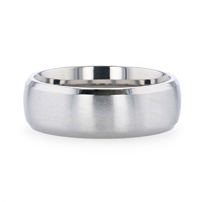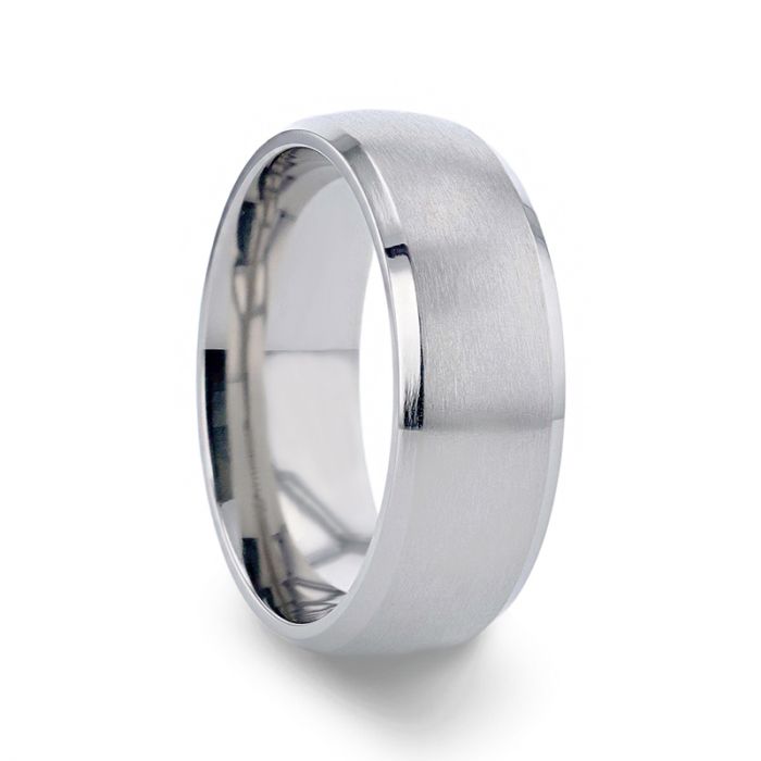 The perfect men's titanium ring. Distinctively masculine and carefully crafted with chrome, this domed band with beveled edges is guaranteed to always give you a stunning look. The flat band and comfort fit are a perfect depiction of the artistic work put into this piece. This ring has a shiny metallic appearance, making it the ideal symbol of appreciation of your everlasting love. The ring features a comfort fit, ensuring the ring is comfortable to wear anywhere your adventures take you. Its finishing is carefully polished to give you that elegant look that will have everyone staring. Titanium is a fine choice for a groom who desires a shiny metallic ring on their big day. The wise man's white gold, cobalt wedding bands have the same look and feel as white gold. And the best part is, they are engineered from a super sturdy metal that has an incredibly high level of durability.