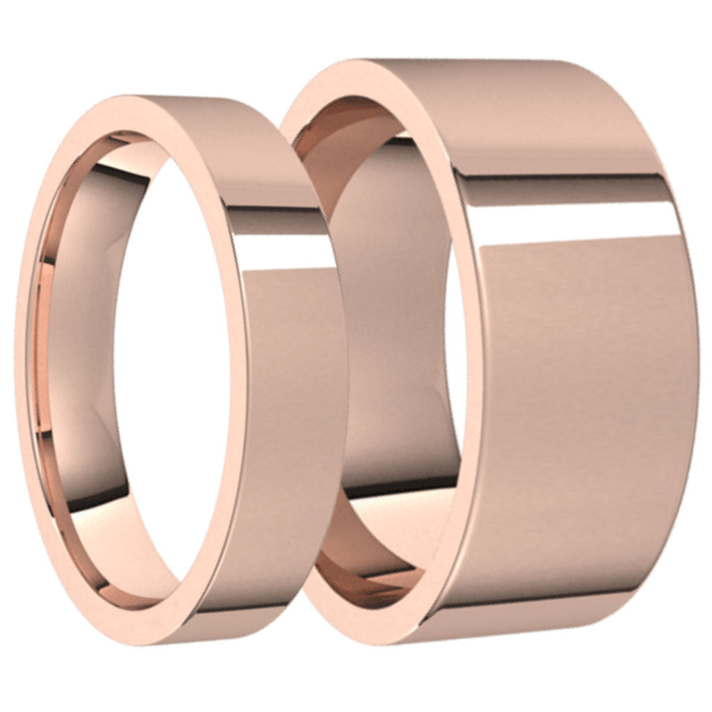 Classic Solid 14k Rose Gold Couple's Matching Wedding Band Set