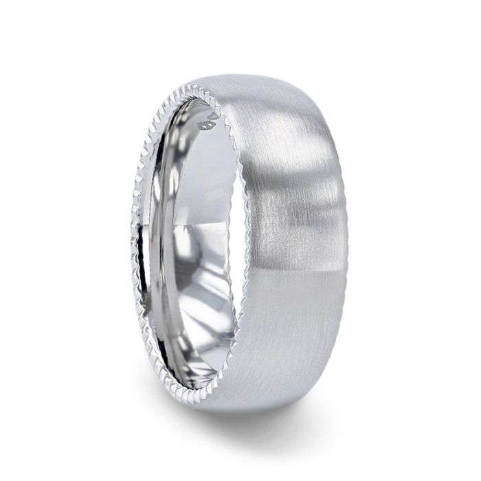 This hypoallergenic, durable cobalt masterpiece comes with a lustrous, silver-toned metal color and a dimmed cool undertone that makes it the perfect wedding ring. The cobalt band has rope edges and is maintenance-free, guaranteeing that it will remain as good as new even in years to come. And it gets even better: cobalt is resistant to corrosion and super tough, making it more scratch-resistant than titanium, a perfect fit for a man who works a lot with his hands. This classic ring combines a sparkling reflective aura with high-level durability to give you the ultimate representation of your everlasting love. The ring has a flat profile, which is very comfortable on the finger. This is the perfect ring to say ‘yes’ to the love of your life. Celebrate your wedding day in style with this elegant, dazzling band that makes a unique alternative to gold or tungsten.