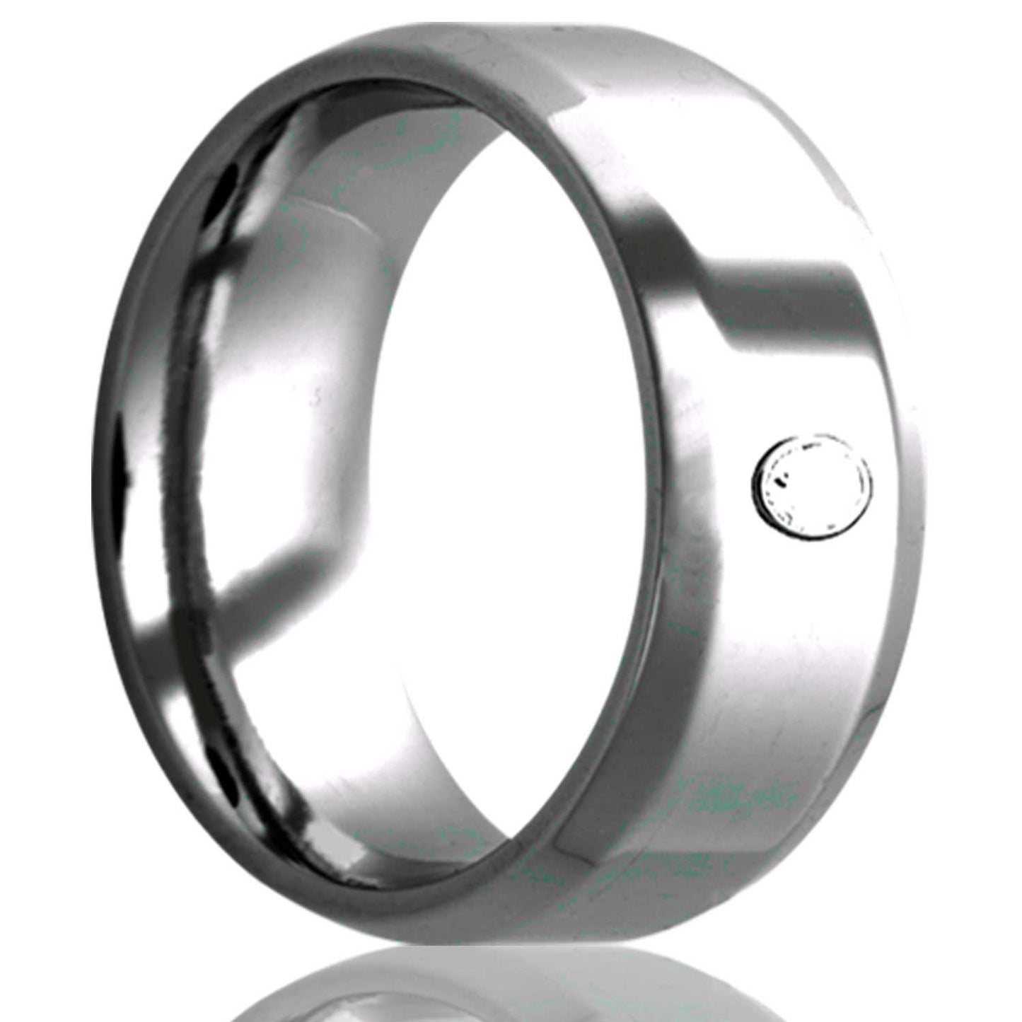Cobalt Wedding Band with Beveled Edges & Diamond