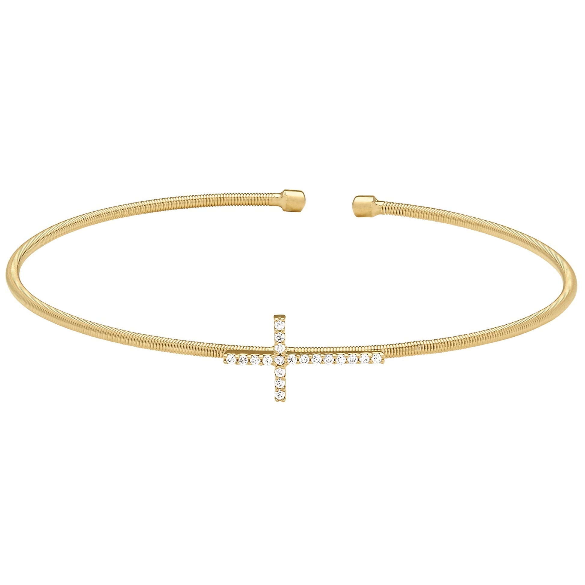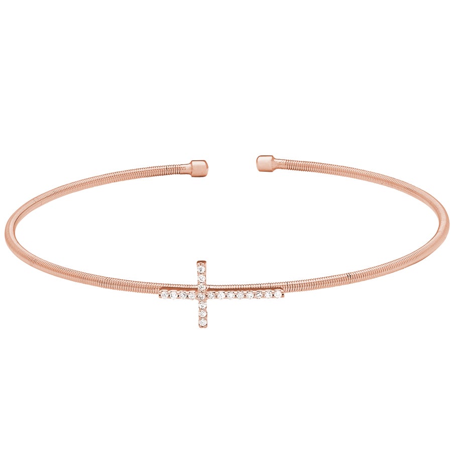 Cross Flexible Cable Bracelet with Simulated Diamonds