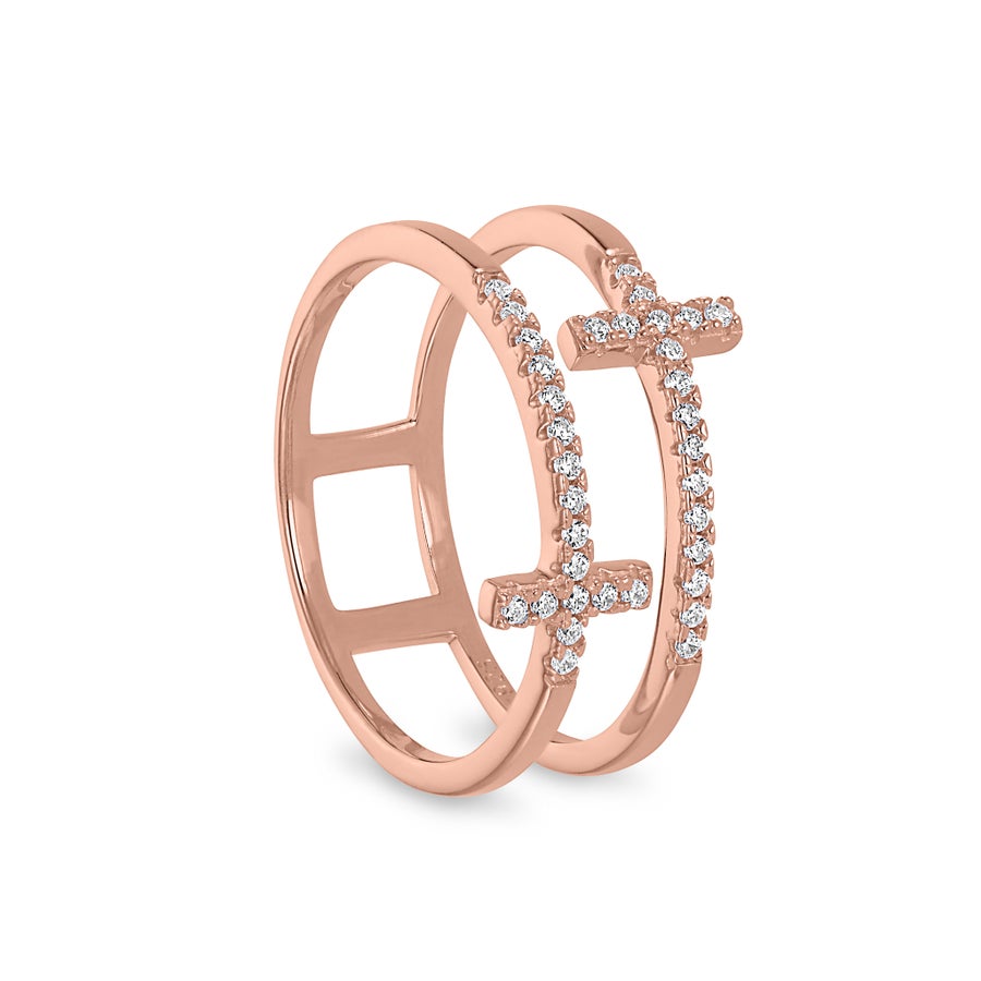 Cross Negative Space Women's Ring with Simulated Diamonds