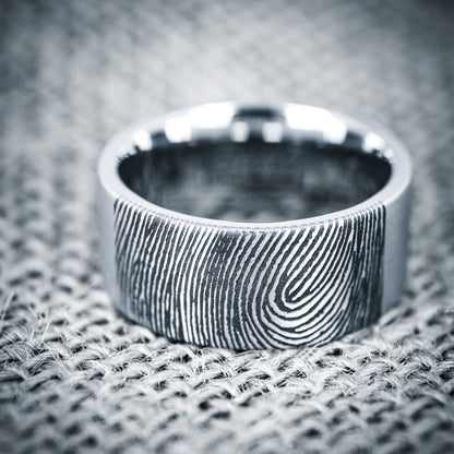 Custom Fingerprint Brushed Tungsten Men's Ring