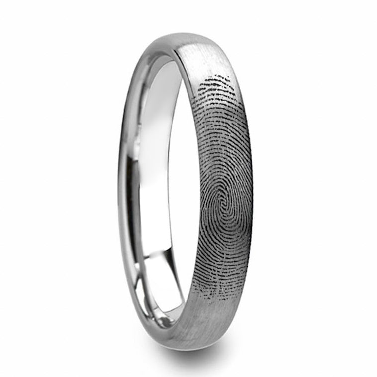 Custom Fingerprint Engraved Brushed Tungsten Domed Men's Ring