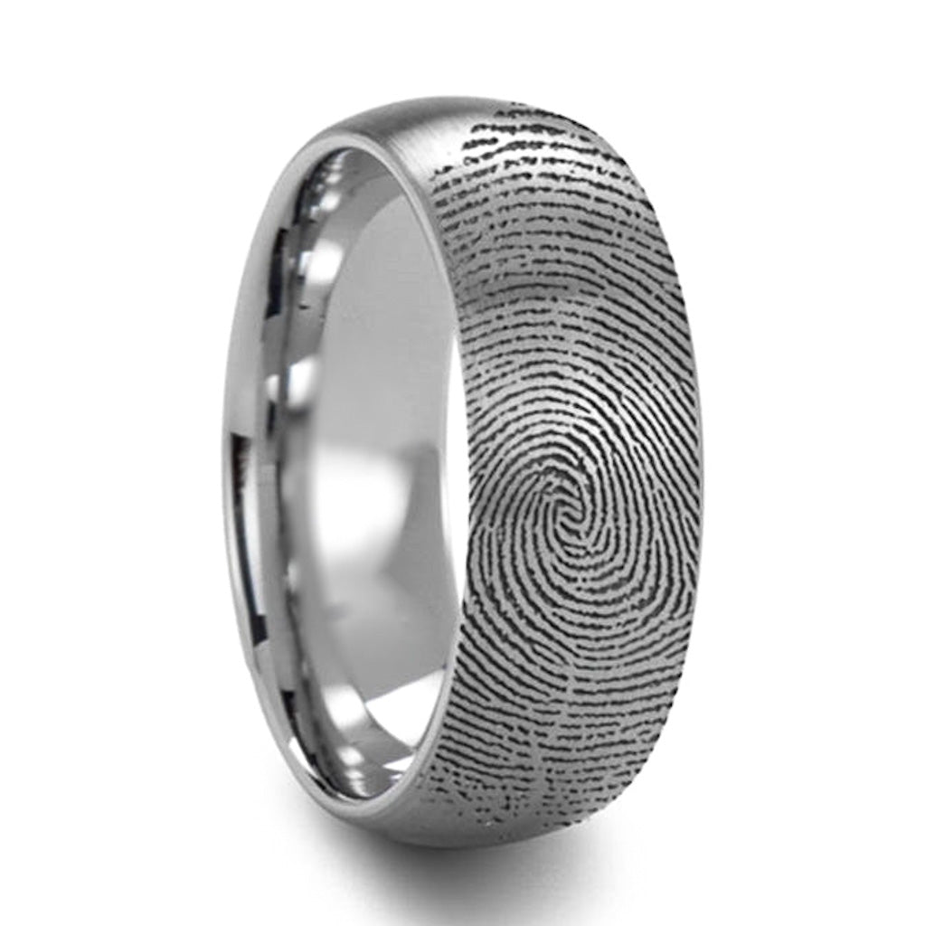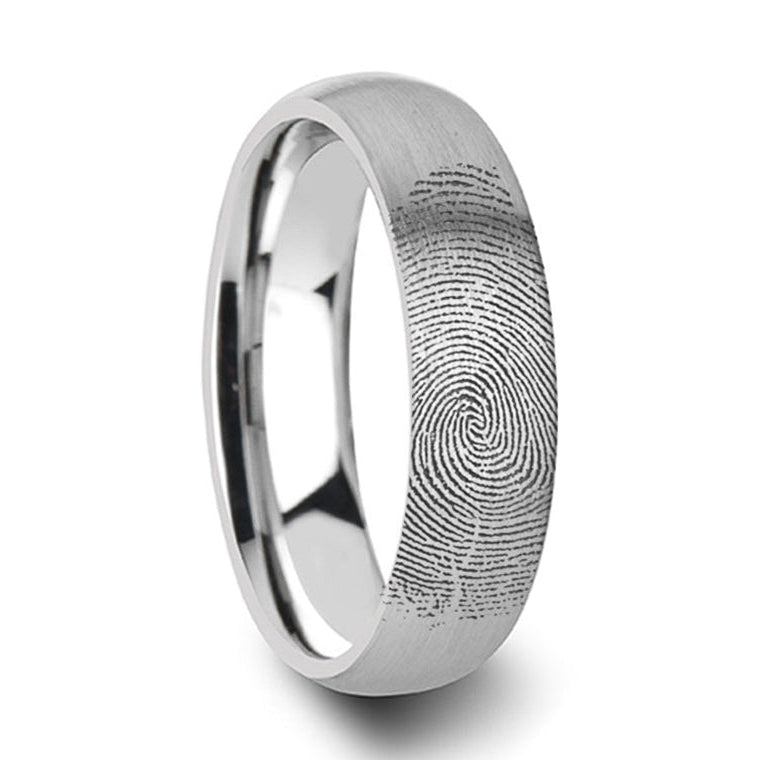 Custom Fingerprint Engraved Brushed Tungsten Domed Men's Ring