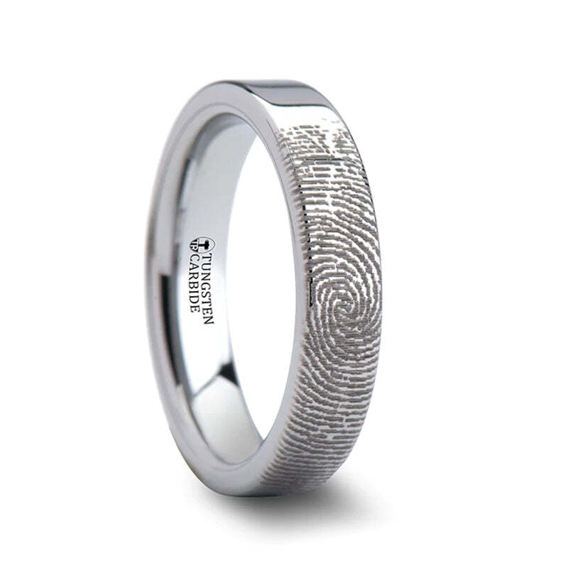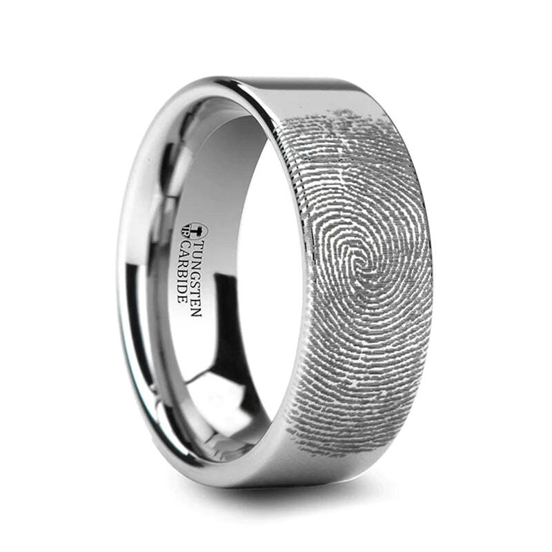 Custom Fingerprint Engraved Tungsten Women's Ring