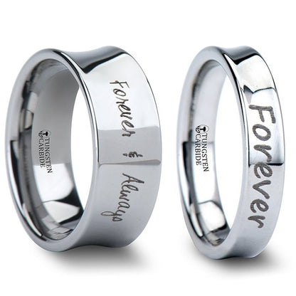 Custom Handwriting Engraved Concave Tungsten Couple's Matching Ring Set