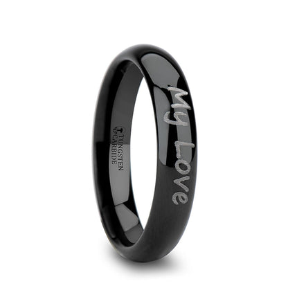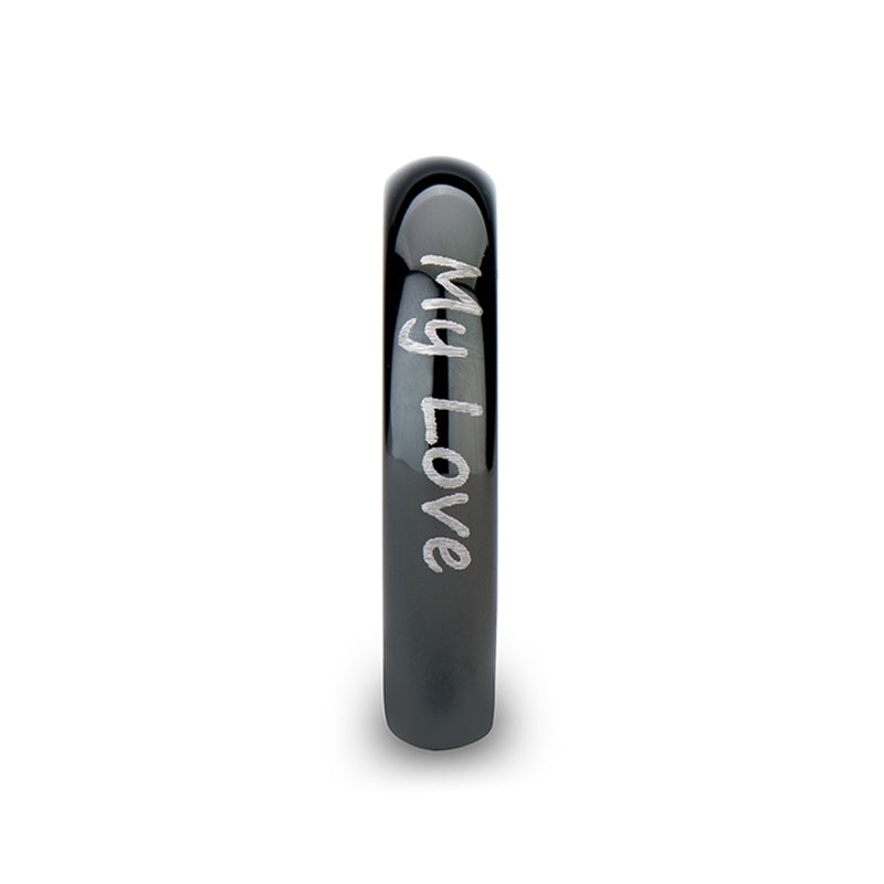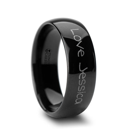 Custom Handwriting Engraved Domed Black Tungsten Women's Ring